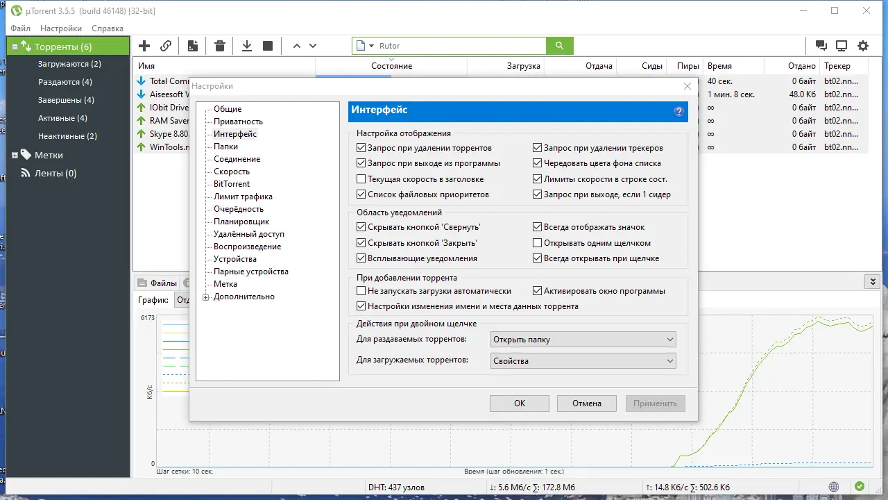 - Поддержка шифрования и DHT повышает анонимность и расширяет доступ к раздачам.