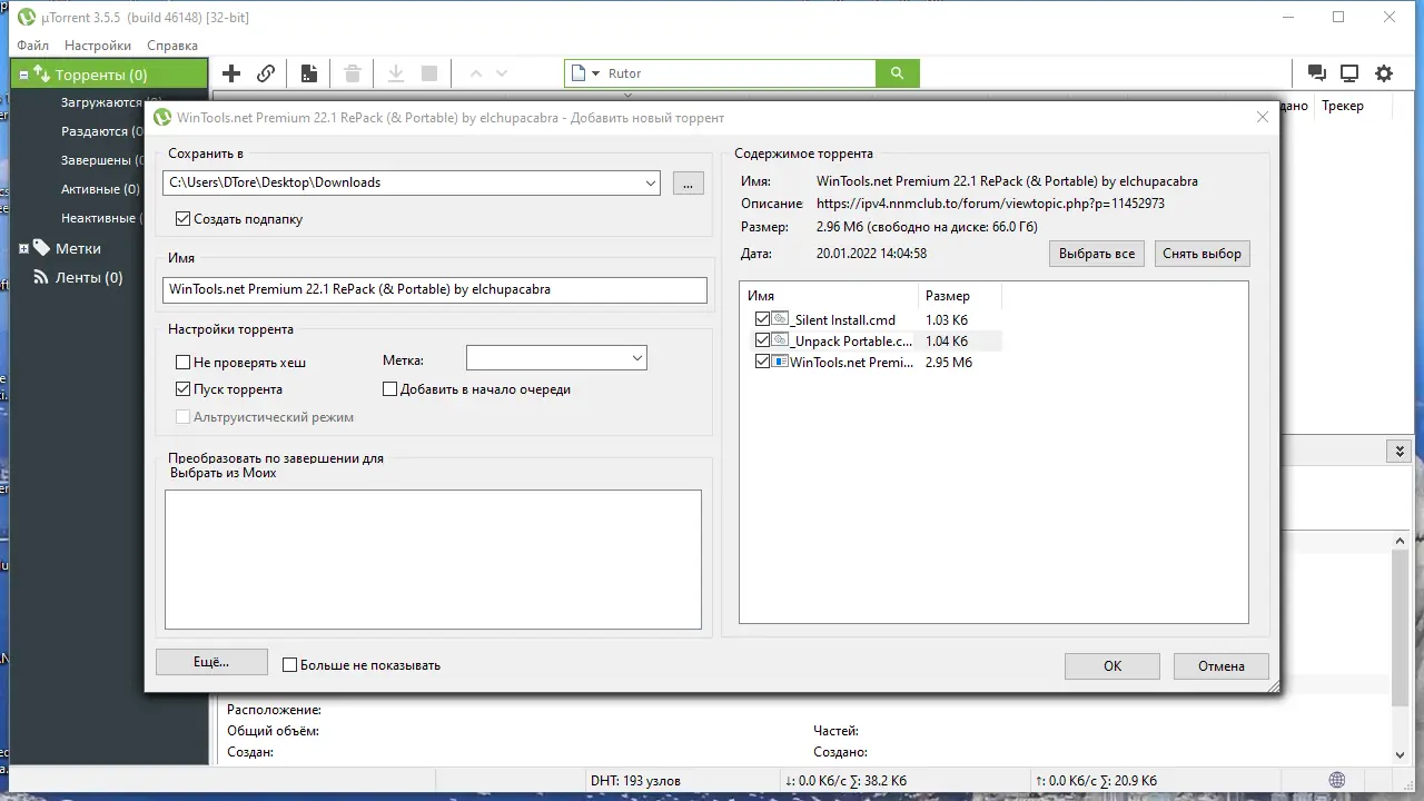- Поддержка DHT позволяет подключаться к раздачам без участия центрального трекера, расширяя возможности поиска пиров.