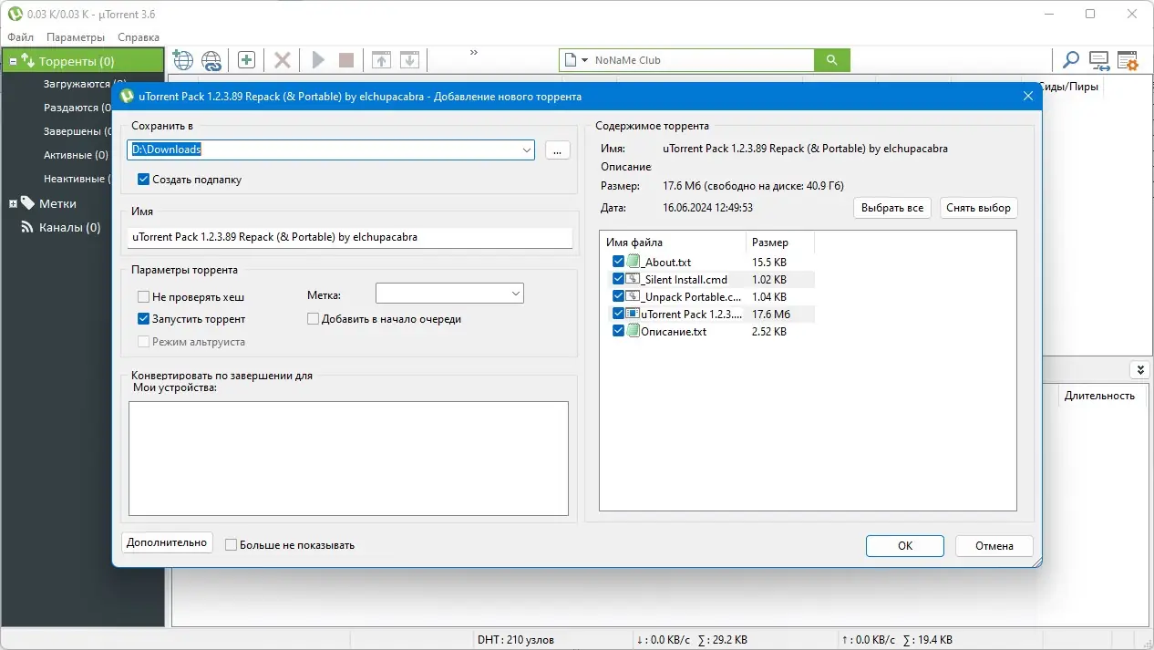 uTorrent — один из самых популярных торрент-клиентов в мире, известный своей легковесностью и высокой эффективностью при работе с крупными файлами. Программа поддерживает все ключевые функции, необходимые для комфортной загрузки: DHT, UPnP, NAT-PMP, шифрование трафика и управление приоритетами соединений. Адаптированная версия из репака позволяет использовать uTorrent без вмешательства в систему, с возможностью выбора между установочной и портативной сборкой. Это делает её удобной как для опытных пользователей, так и для тех, кто ценит простоту и стабильность.