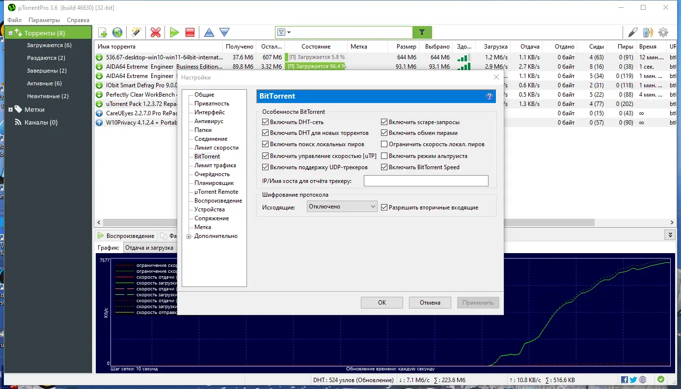 µTorrent представляет собой компактное приложение, способное эффективно работать с торрент-файлами без излишней нагрузки на систему. Несмотря на малый размер, программа включает множество продвинутых функций, таких как поддержка DHT, UPnP, NAT-PMP и шифрование соединения. Это обеспечивает стабильность подключения и высокую скорость передачи данных даже в условиях ограниченного доступа к трекерам. Интерфейс интуитивно понятен и поддерживает смену тем оформления.