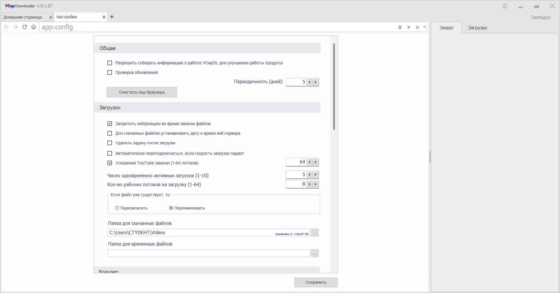 - Поддерживается технология многопоточной загрузки, что значительно ускоряет процесс сохранения контента.