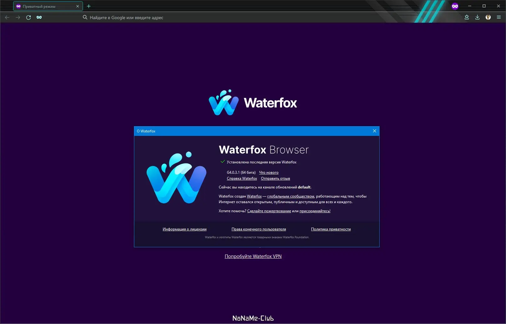 Описание Waterfox