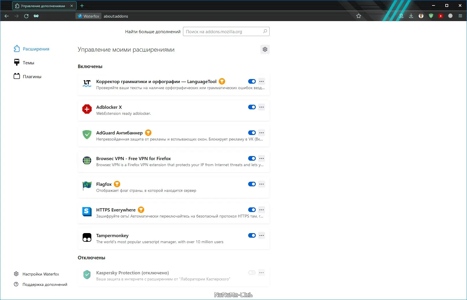 Как пользоваться Waterfox
