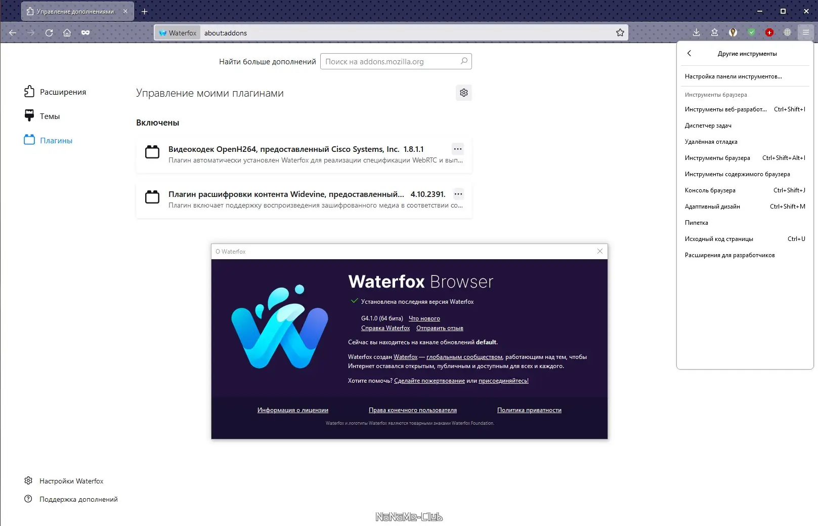Как пользоваться Waterfox