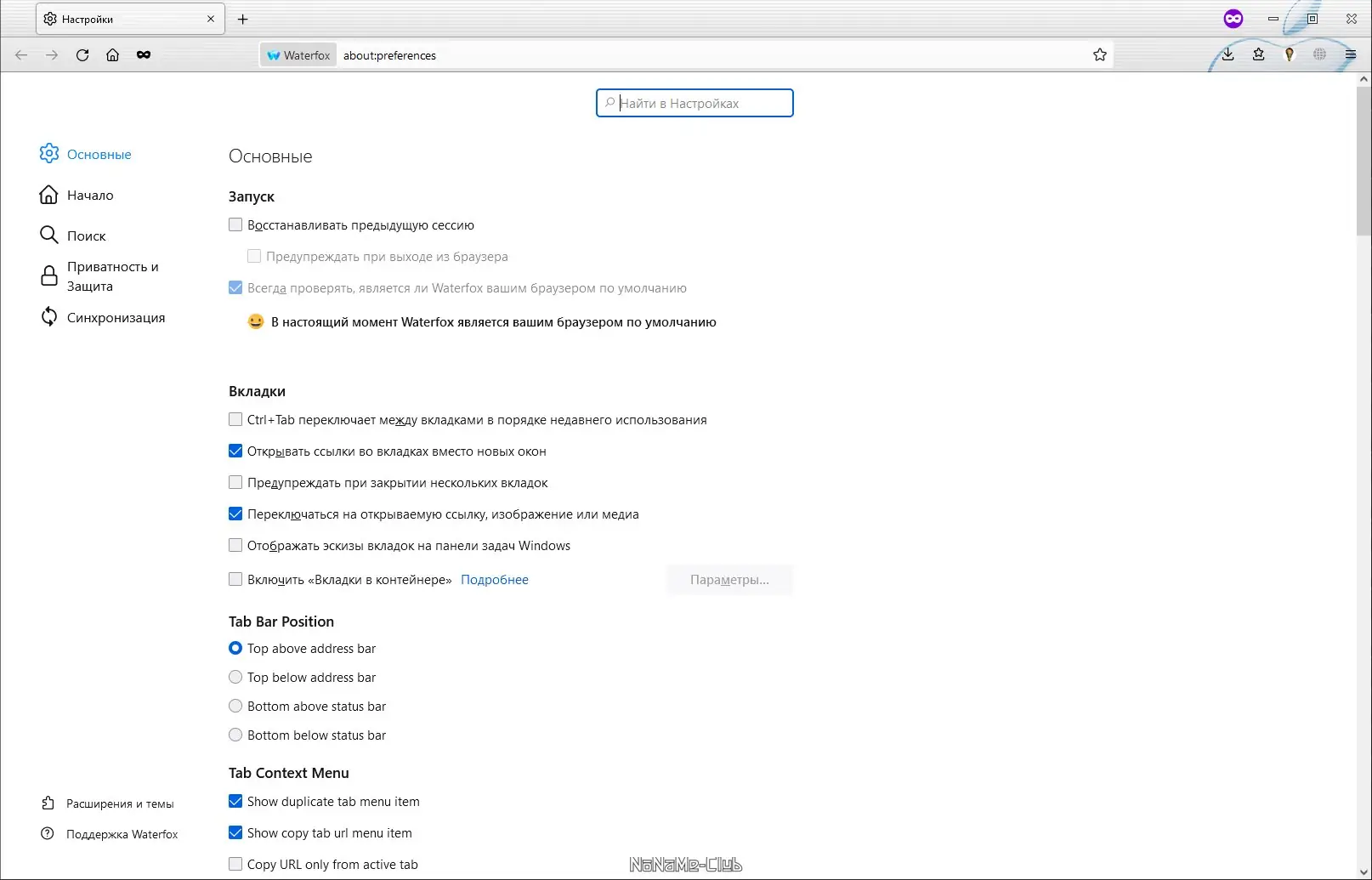 Как пользоваться Waterfox