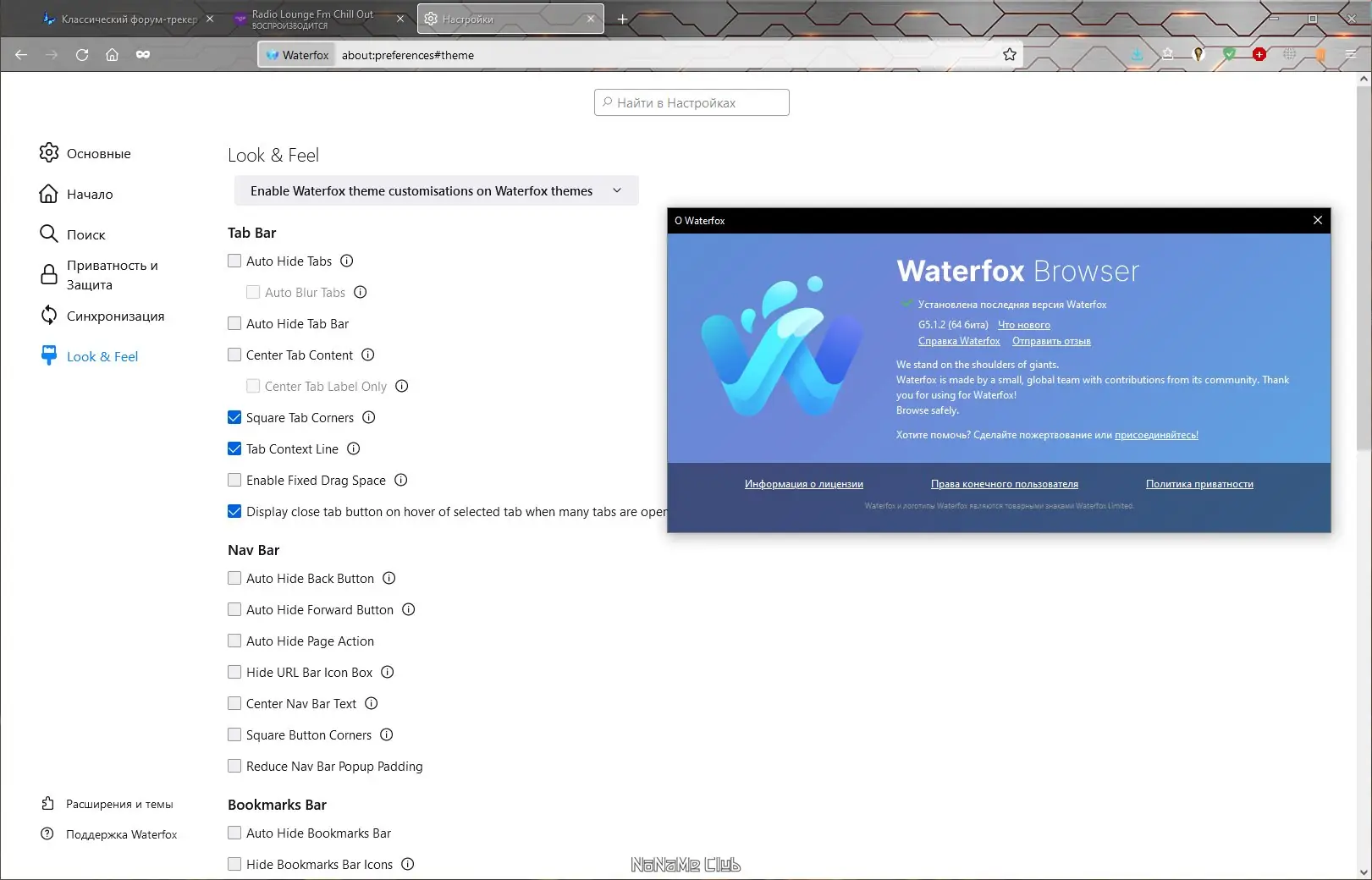 Waterfox эффективно использует преимущества 64-битной архитектуры, обеспечивая стабильность и высокую скорость даже при одновременной работе с десятками вкладок.