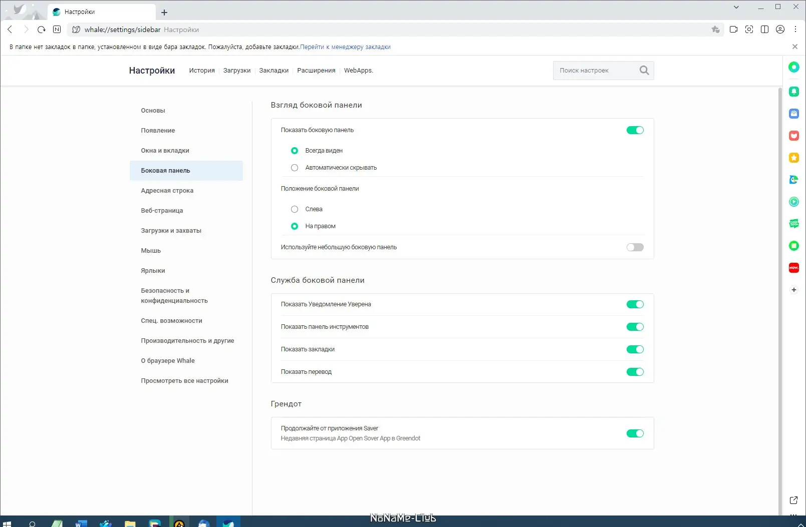 - Боковая панель, которую можно настраивать и временно скрывать, позволяет размещать часто используемые сервисы, такие как мессенджеры или почта, не переключаясь между вкладками.
