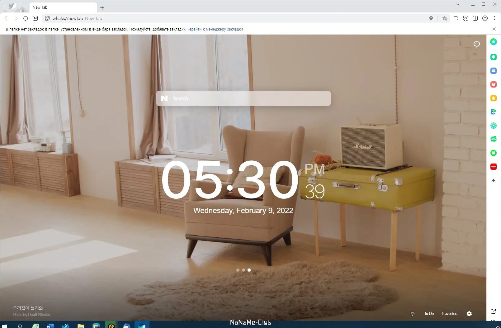 После установки Whale Browser интерфейс открывается с приветственной страницей, где доступны рекомендации по настройке. Боковую панель можно настроить через меню, добавляя виджеты или закрепляя веб-страницы как отдельные приложения. Режимы отображения активируются через иконку в правом верхнем углу, а смена темы и переход в «тонкий» режим настраиваются в разделе внешнего вида. Пользователь может импортировать закладки, настроить блокировщик рекламы и подключить расширения, аналогично другим Chromium-браузерам.