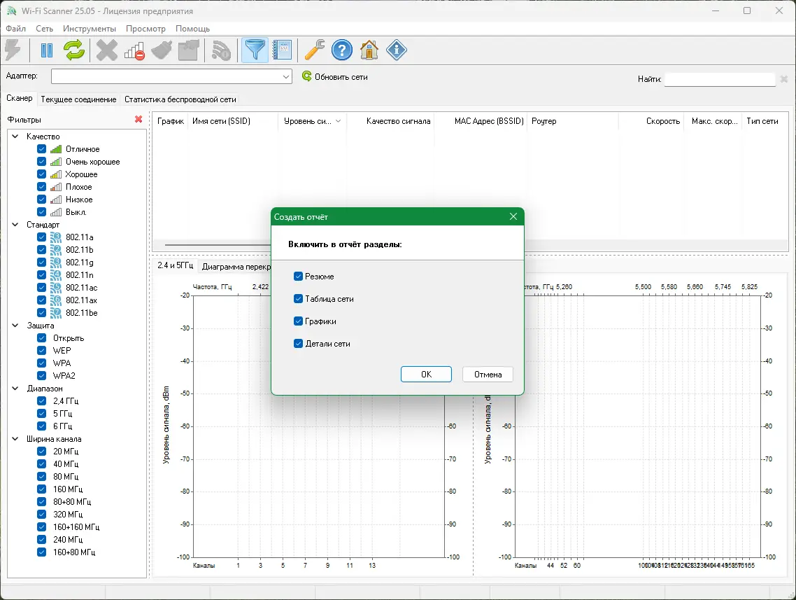 Программа помогает не только находить сети, но и глубоко анализировать их параметры для повышения стабильности и скорости соединения.