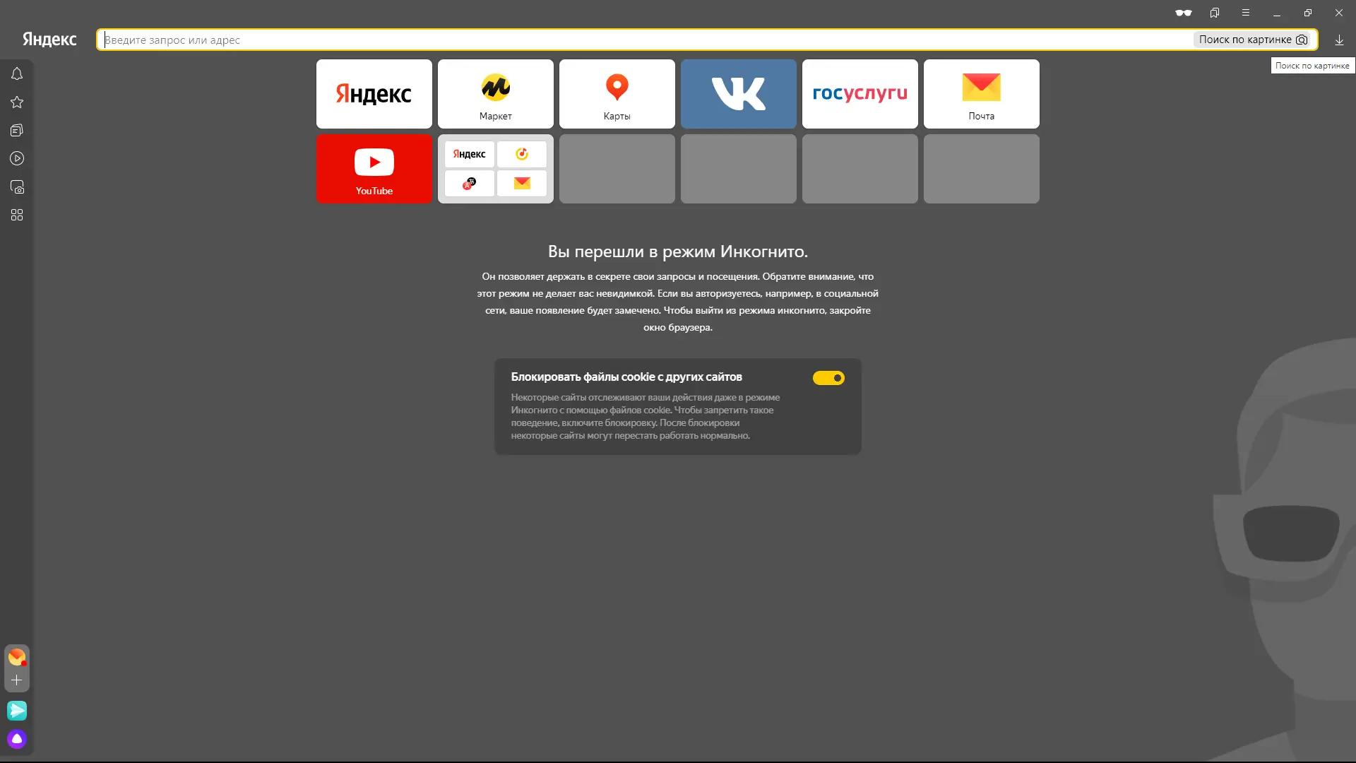- Боковая панель дает мгновенный доступ к Алисе, музыке, заметкам, истории и сервисам Яндекса без переключения вкладок.