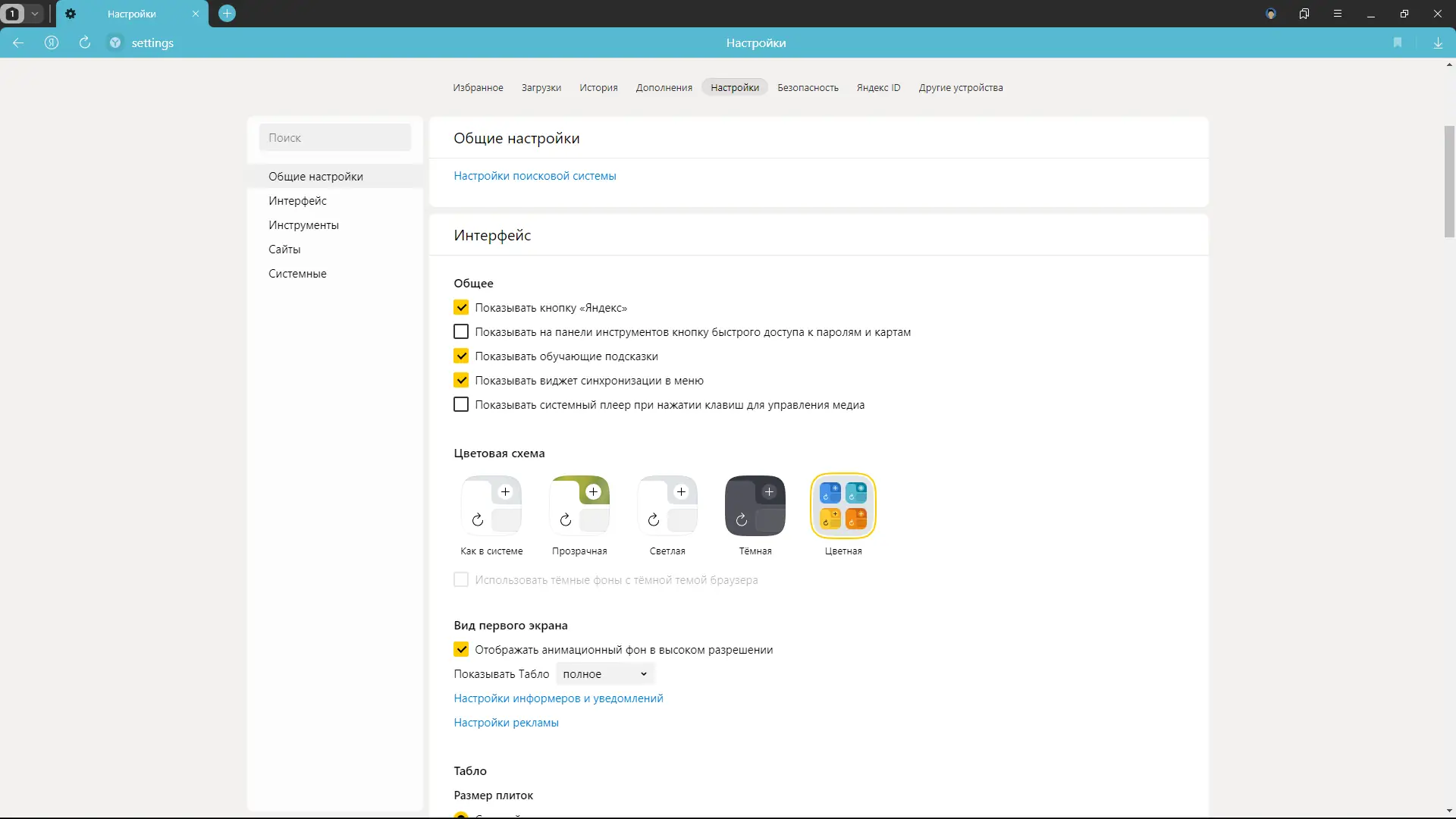 - Боковая панель с доступом к Алисе, мессенджеру, заметкам и сервисам Яндекса