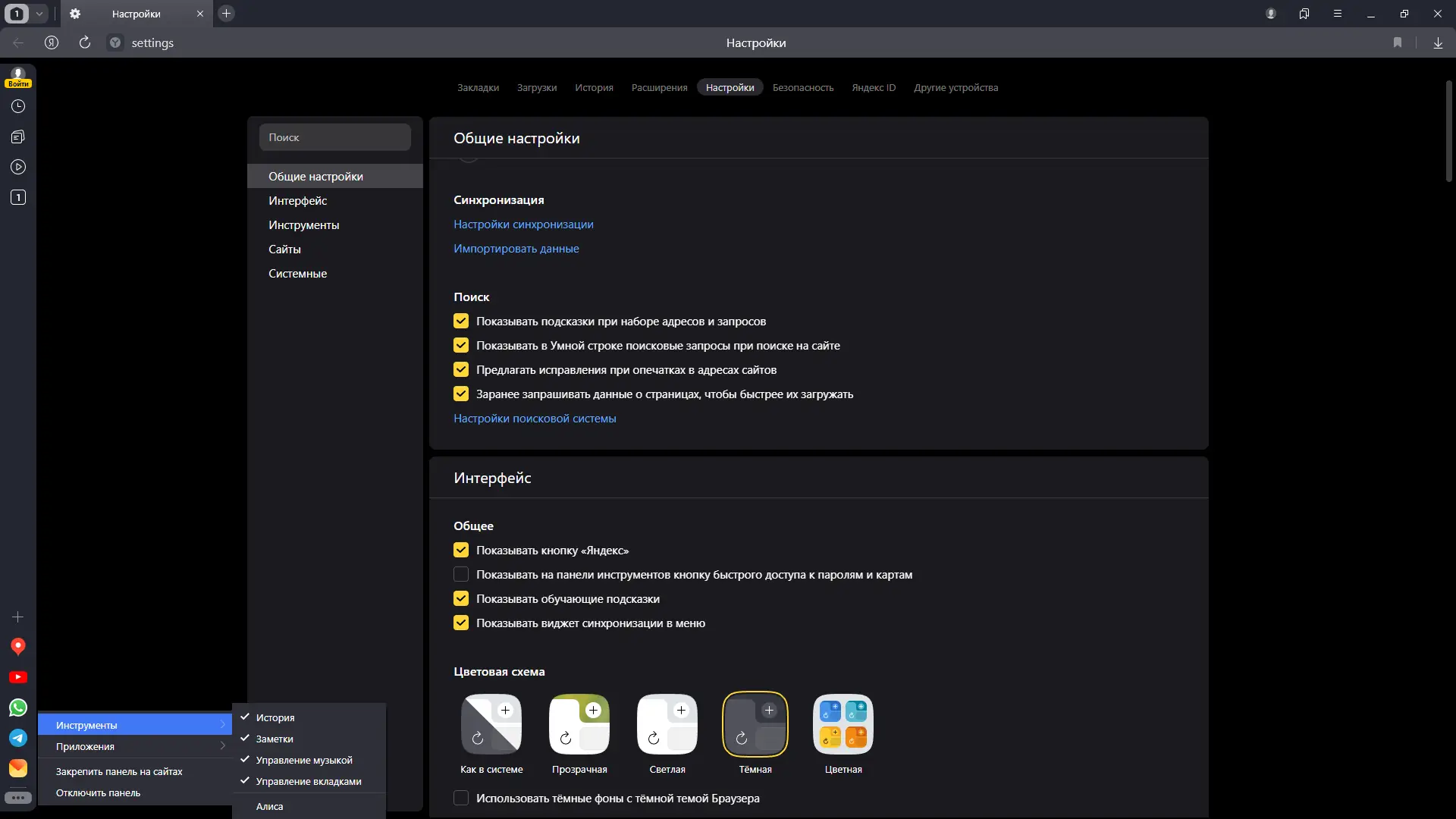 После установки браузер автоматически предложит импортировать закладки, историю и пароли из другого обозревателя. Умная строка в верхней части окна объединяет поисковую систему, адресную строку и переводчик. Для создания веб-приложения достаточно перетащить сайт в боковую панель. Скриншоты можно делать прямо из интерфейса, а группы вкладок помогут организовать рабочее пространство. Встроенный мессенджер позволяет общаться с контактами и Алисой без переключения между приложениями.