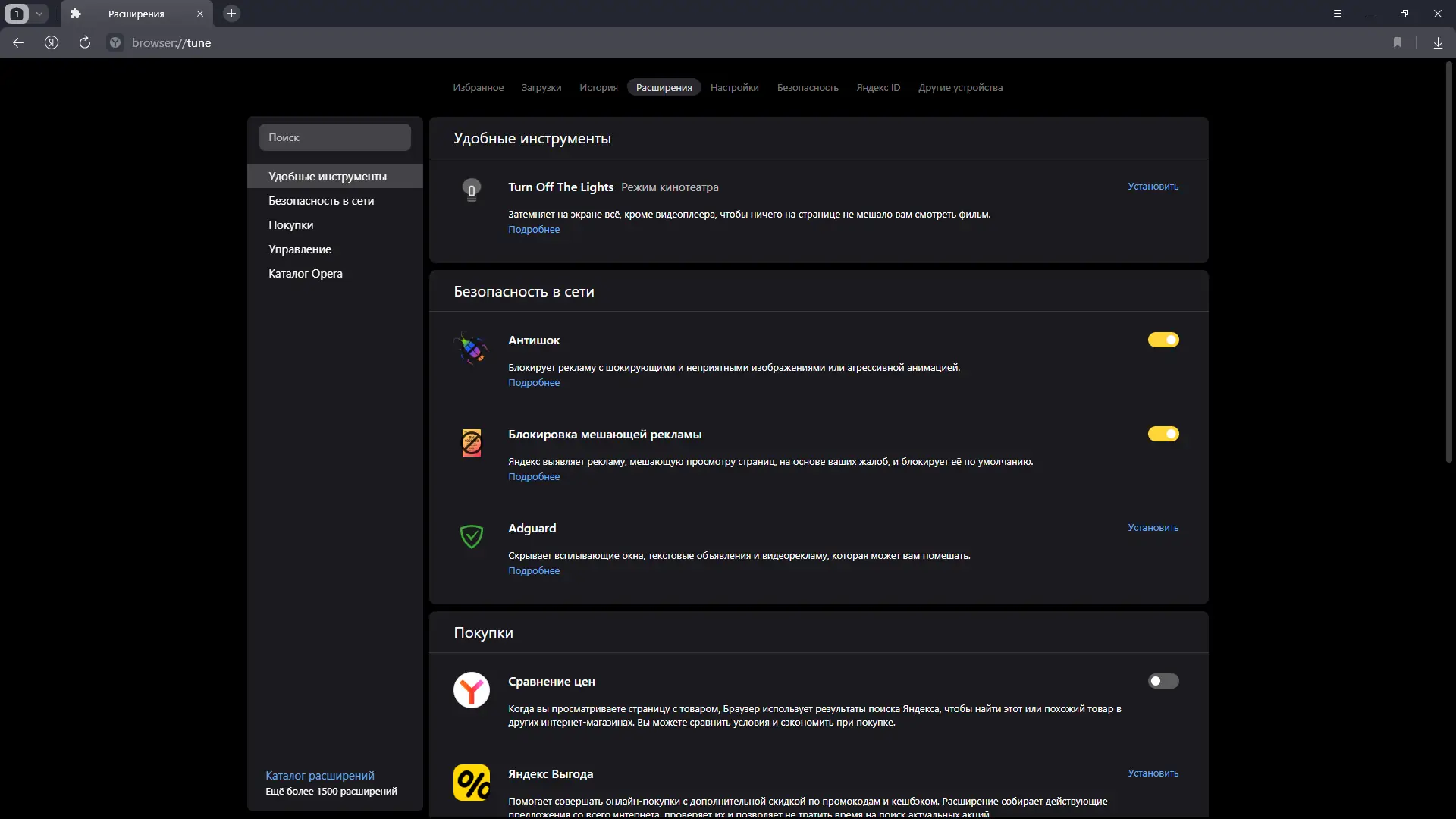 - Удобные инструменты: переводчик, нейросети, группы вкладок