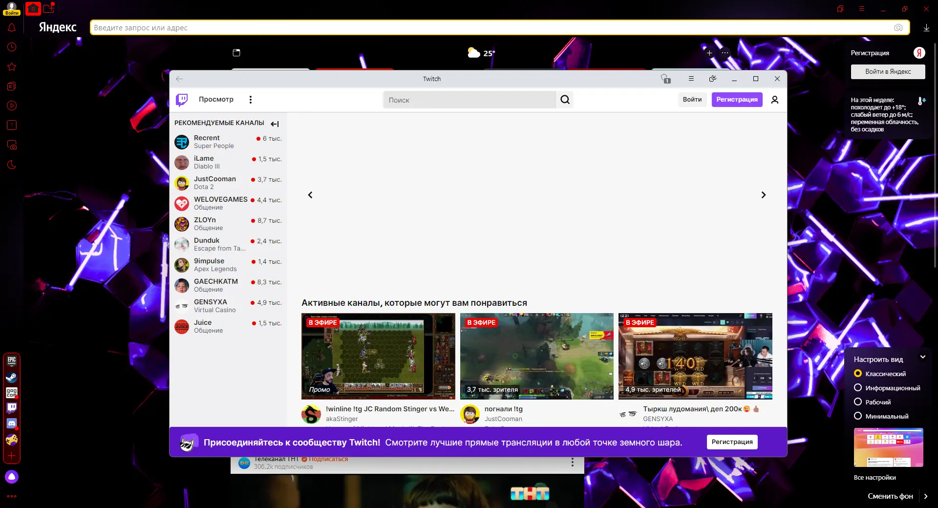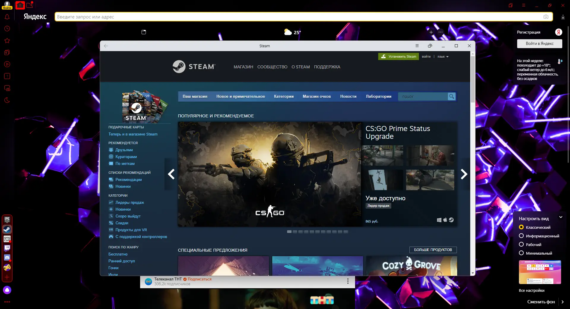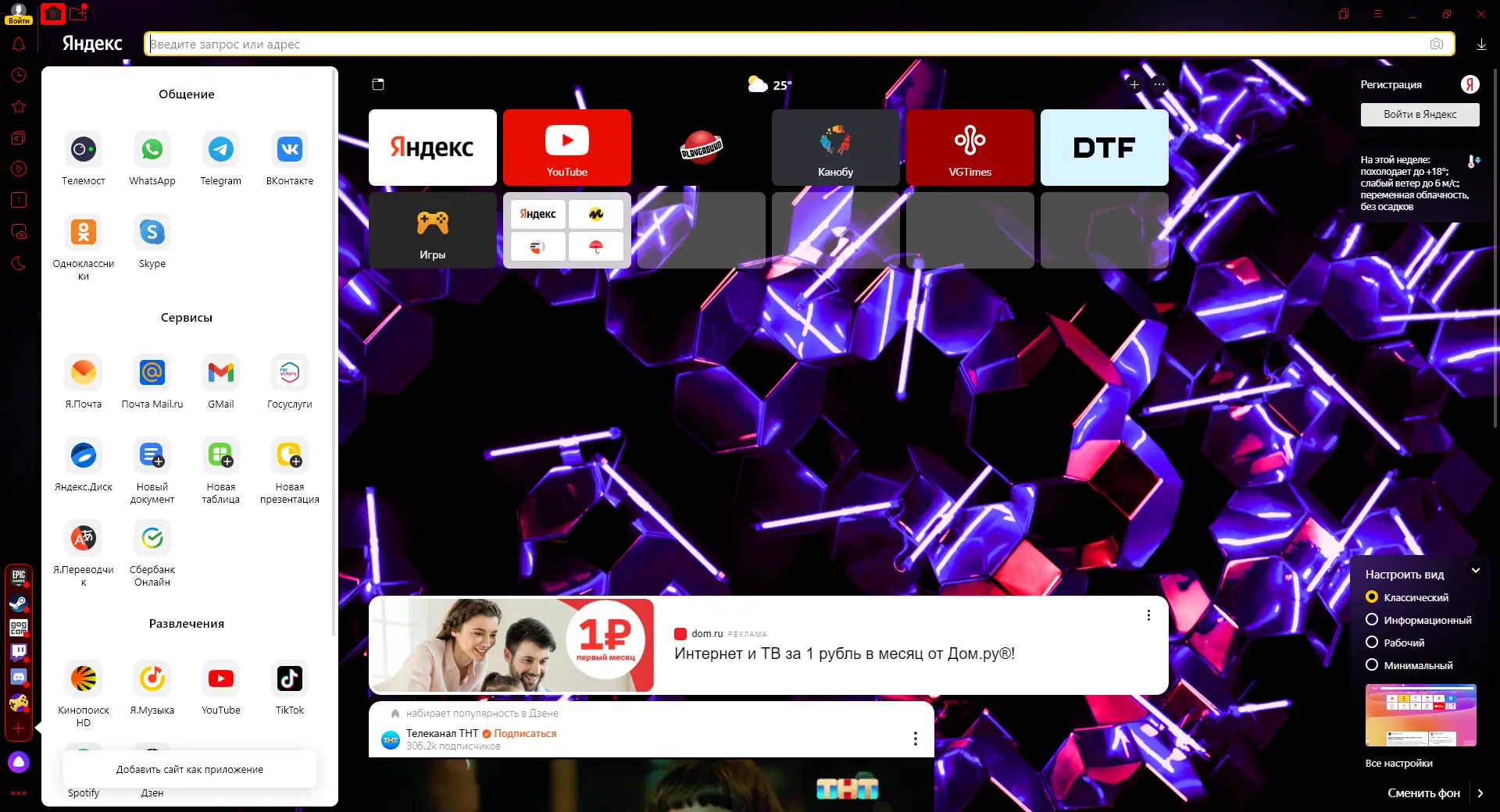 После установки браузер автоматически предложит импортировать закладки, историю и пароли из других обозревателей. Умная строка в верхней части окна объединяет функции поиска и адресной строки — достаточно начать вводить запрос, чтобы получить подсказки и быстрые ссылки. Табло отображается при открытии новой вкладки и содержит плитки часто посещаемых сайтов, которые можно настраивать вручную. Через боковую панель доступны сервисы: Алиса, Мессенджер, музыка, заметки и поиск по странице. Для активации защищённого режима при онлайн-платежах достаточно кликнуть на значок щита в адресной строке. В настройках можно включить блокировку рекламы, трекеров и вредоносных расширений, а также экспортировать сохранённые пароли.