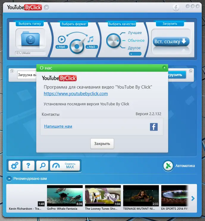 YouTube By Click — это программа для загрузки видео с YouTube и других популярных платформ, обеспечивающая быстрое сохранение контента в нужном формате и качестве. Приложение поддерживает множество сайтов, включая Facebook, Vimeo, Dailymotion и OK.ru, позволяя скачивать отдельные ролики, плейлисты и целые каналы. Утилита совместима с основными браузерами и предлагает простой интерфейс для комфортного использования.