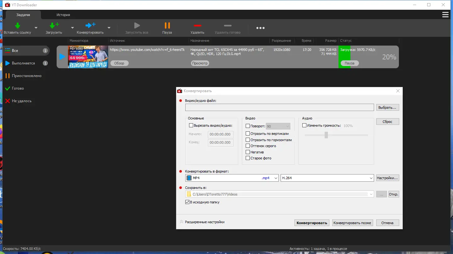 - Возможность скачать аудио в mp3 без загрузки полного видеофайла.