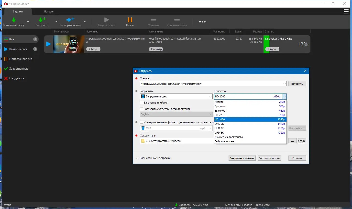 - Возможность скачать видео в формате mp4 и других популярных видеокодеках для последующего просмотра на любом устройстве.