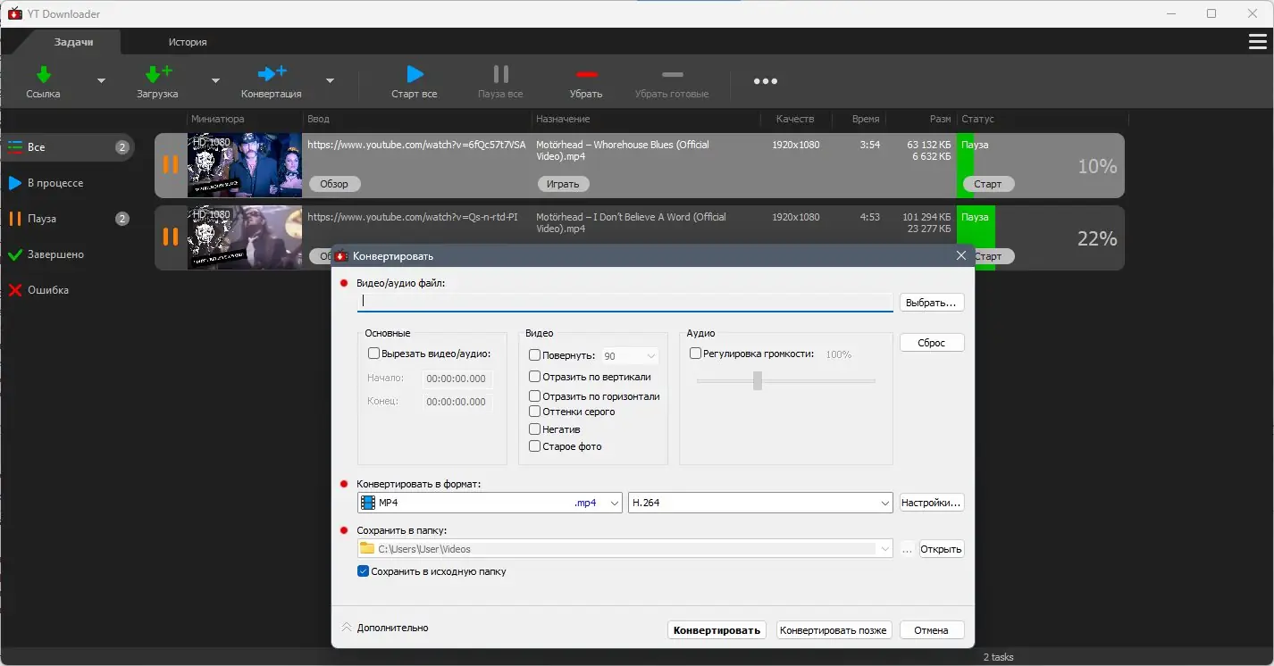 - Поддержка загрузки с сотен видеоплатформ, включая YouTube, Facebook и Vimeo
