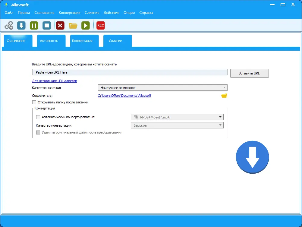 Использование программы предельно простое: достаточно скопировать ссылку на видео и вставить её в интерфейс приложения. Allavsoft автоматически распознаёт доступные форматы и разрешения, позволяя пользователю выбрать оптимальный вариант. Далее можно запустить процесс загрузки или сразу инициировать конвертацию в нужный формат, минуя промежуточное хранение.