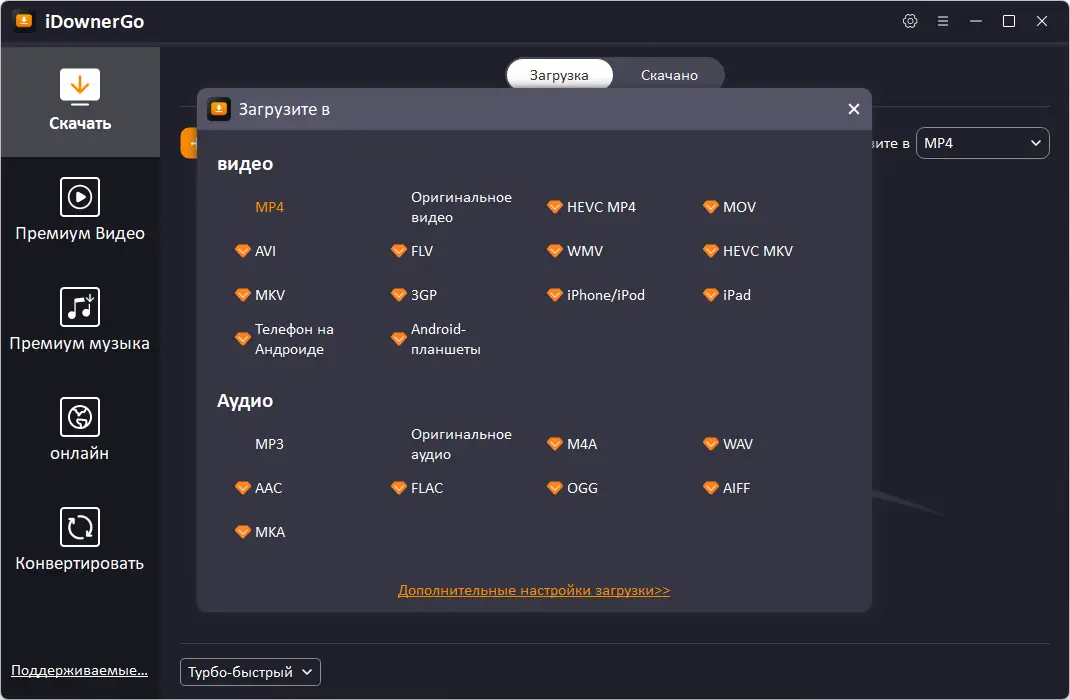 iDownerGo представляет собой мощное решение для тех, кто регулярно работает с онлайн-контентом. Приложение позволяет загружать мультимедиа с более чем десяти тысяч веб-ресурсов, обеспечивая стабильную работу и высокую скорость. Интерфейс отличается простотой и логичной структурой, что делает использование интуитивно понятным даже для новичков. Пользователи могут сохранять видео и музыку в оригинальном качестве, а также конвертировать файлы под нужные устройства.