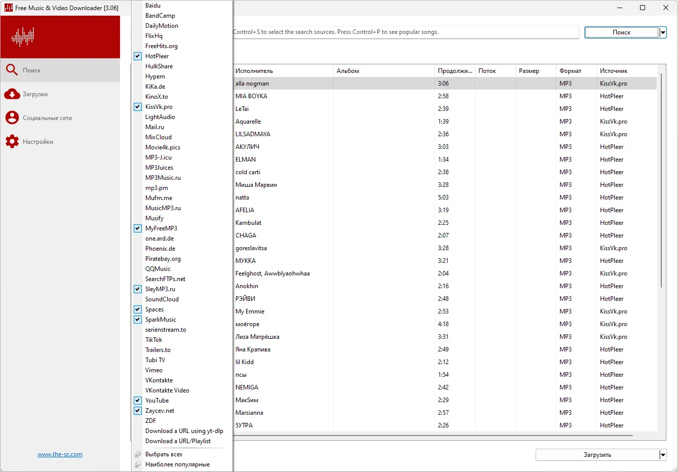 Lacey — это удобная программа для поиска и загрузки аудио и видео с популярных интернет-ресурсов, включая социальные сети и облачные сервисы. Инструмент поддерживает широкий спектр платформ, автоматизирует процесс извлечения медиафайлов и позволяет конвертировать контент в удобные форматы. Программа подойдёт тем, кто регулярно работает с музыкальными треками, видеозаписями и хочет сохранять их локально без лишних действий.