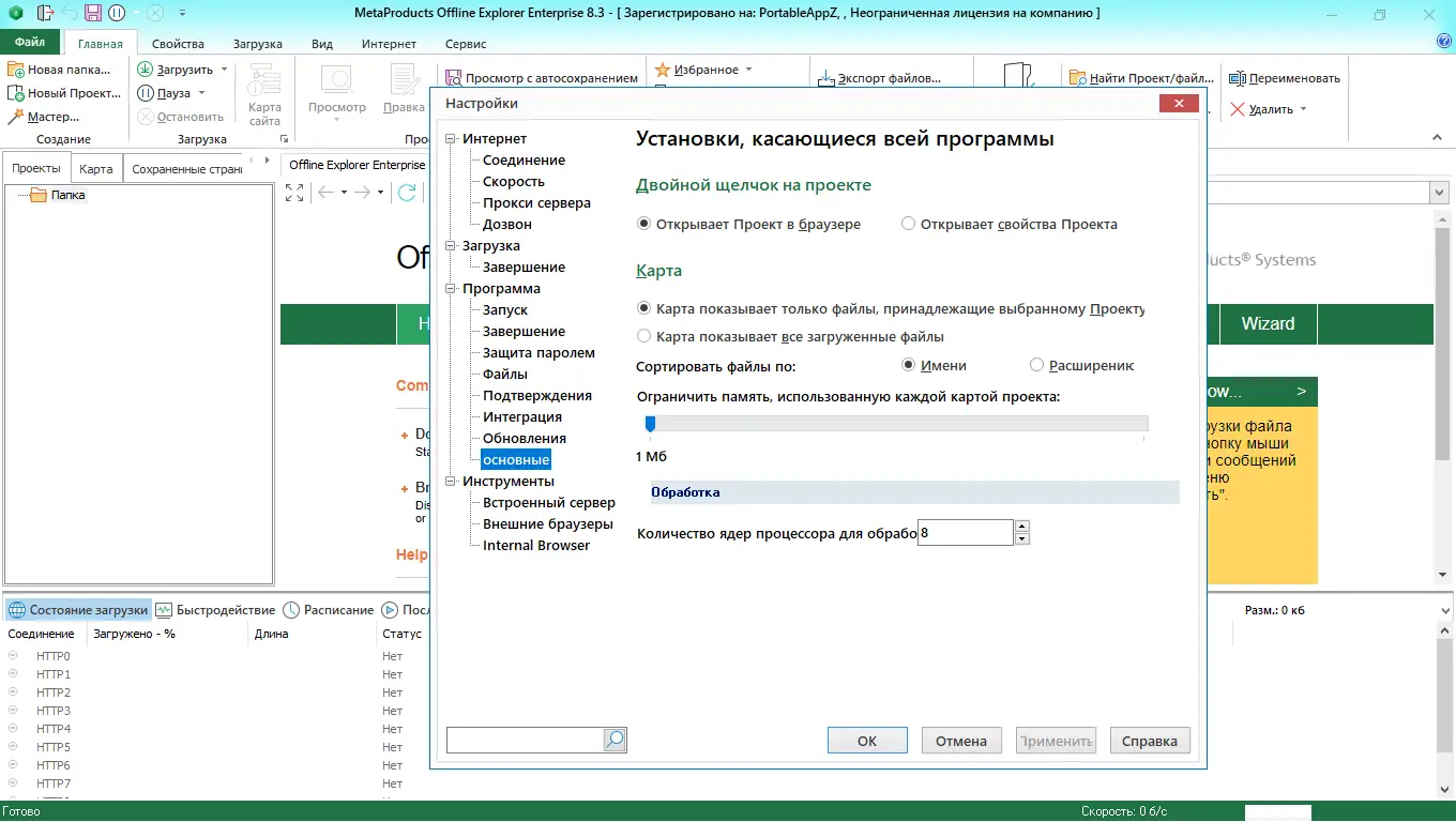 MetaProducts Offline Explorer — это мощный инструмент для архивирования веб-ресурсов, предназначенный для систематического сбора и хранения информации из интернета. Программа поддерживает широкий спектр протоколов, включая HTTP, HTTPS, FTP, а также MMS, RTSP и BitTorrent, что делает её одной из самых универсальных качалок в категории «Разное». Благодаря встроенному веб-браузеру пользователь может просматривать сохранённые страницы, редактировать их содержимое и выполнять поиск по ключевым словам без необходимости выхода в сеть.