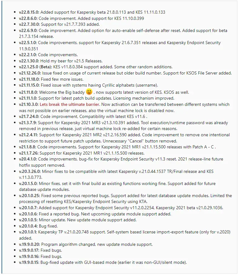 - Поддержка актуальных версий Kaspersky до 2021 года включительно