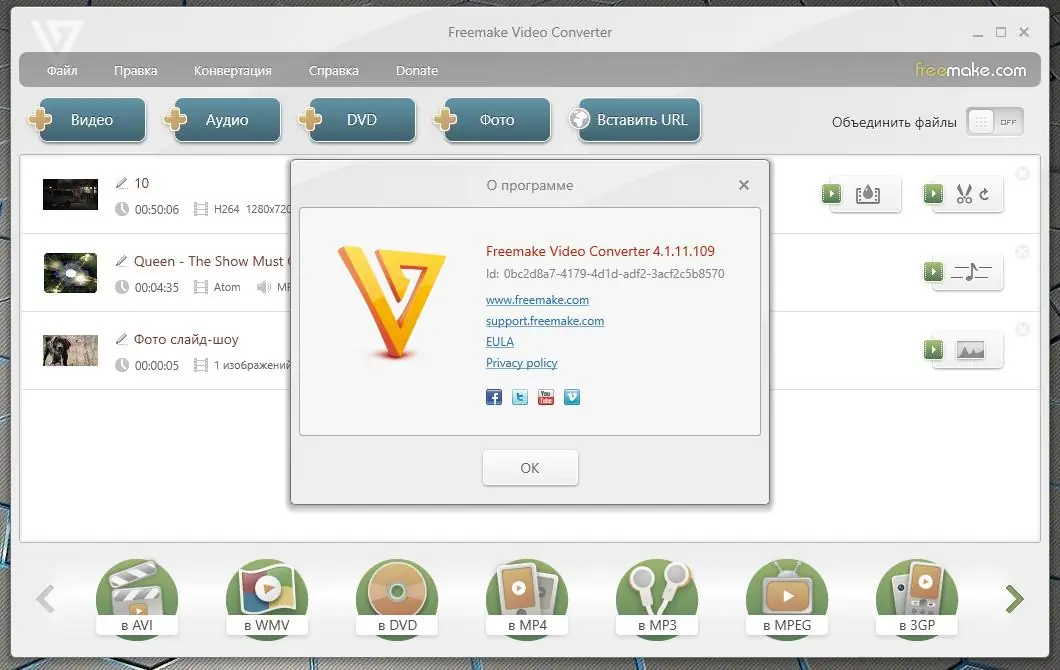 Freemake Video Converter — это универсальное приложение для преобразования видео в различные форматы, редактирования файлов, создания слайд-шоу и записи на физические носители. Программа поддерживает широкий спектр входных и выходных форматов, включая AVI, MP4, WMV, MKV, 3GP, а также позволяет конвертировать контент для мобильных устройств и экспортировать готовые проекты на YouTube. Инструмент подходит как для новичков, так и для пользователей, которым требуется базовое редактирование без использования сложных приложений.