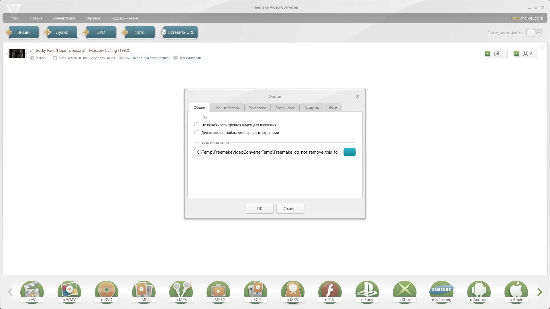 Freemake Video Converter — это универсальный инструмент, ориентированный на обработку видеоданных. Приложение поддерживает широкий спектр форматов, включая популярные MP4, AVI, MKV, а также аудиоформат MP3 и дисковые форматы DVD и Blu-ray. Пользователи могут конвертировать видео с таких платформ, как YouTube, Vimeo и Facebook, сохраняя материал в нужном качестве, вплоть до Full HD и 4K. Программа отлично справляется с задачами перекодирования для мобильных устройств, включая модели от Apple, Samsung и Sony.
