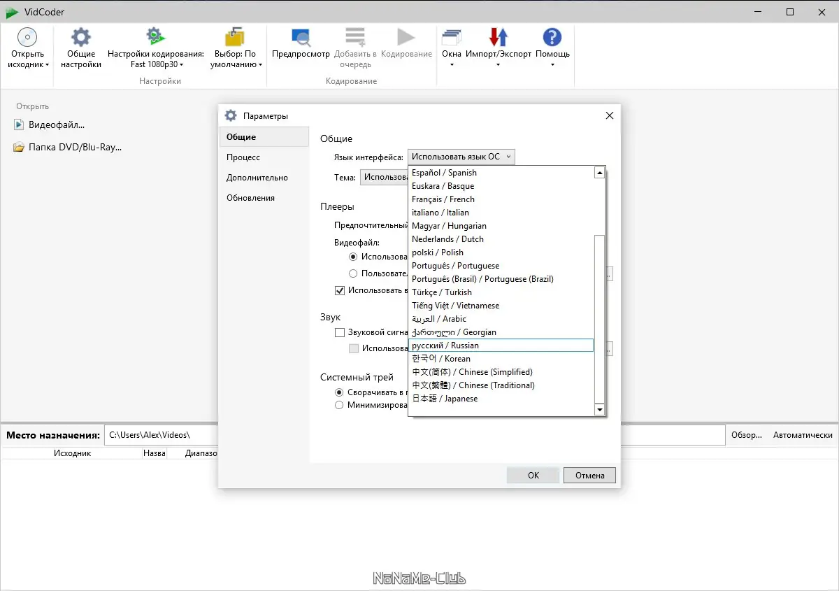 - Поддержка аппаратного ускорения через AMD VCE, Nvidia NVENC и Intel QuickSync для быстрой обработки