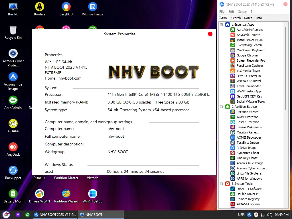 NHV-BOOT — это универсальный загрузочный инструмент для диагностики, восстановления и обслуживания компьютеров, сочетающий в себе современный интерфейс, высокую скорость загрузки и расширенные функции, ориентированные на ИТ-специалистов и системных администраторов. Основанный на Win11PE и Win10PE, он поддерживает как устаревшие системы с Legacy, так и новейшие устройства с UEFI, обеспечивая совместимость с широким спектром оборудования. Программа включает в себя актуальное программное обеспечение для резервного копирования, восстановления данных, настройки дисков и удалённого доступа.