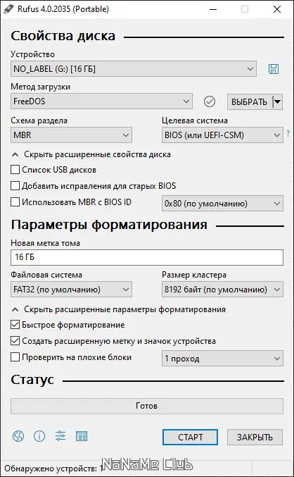 Использование программы предельно простое: подключите USB-устройство, запустите Rufus, выберите нужный диск в списке. Далее укажите путь к ISO-образу, который необходимо записать, и задайте параметры файловой системы, размер кластера и метку тома. При необходимости активируйте опцию выравнивания разделов для старых BIOS, после чего начните процесс форматирования и записи. По завершении вы получите полностью готовый загрузочный носитель, пригодный для установки ОС или запуска диагностических утилит. Интерфейс интуитивно понятен, а все настройки сопровождаются пояснениями.