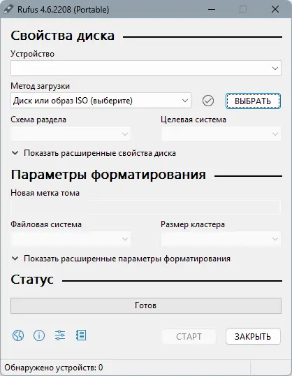 Rufus — это компактная и высокопроизводительная утилита для создания загрузочных USB-накопителей из ISO-образов операционных систем, таких как Windows, Linux и других дистрибутивов. Программа поддерживает широкий спектр форматов и режимов записи, включая UEFI/GPT и устаревшие BIOS-конфигурации. Благодаря портативности и отсутствию необходимости в установке, Rufus идеально подходит для быстрого форматирования и подготовки флешки к загрузке.