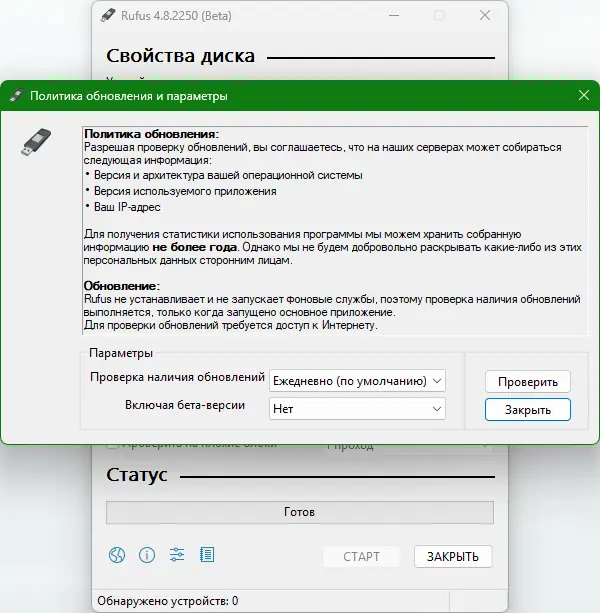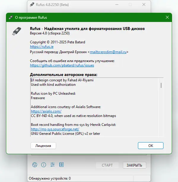 Благодаря портативности и отсутствию необходимости в установке, Rufus можно запускать с любого носителя, не оставляя следов на системном диске.