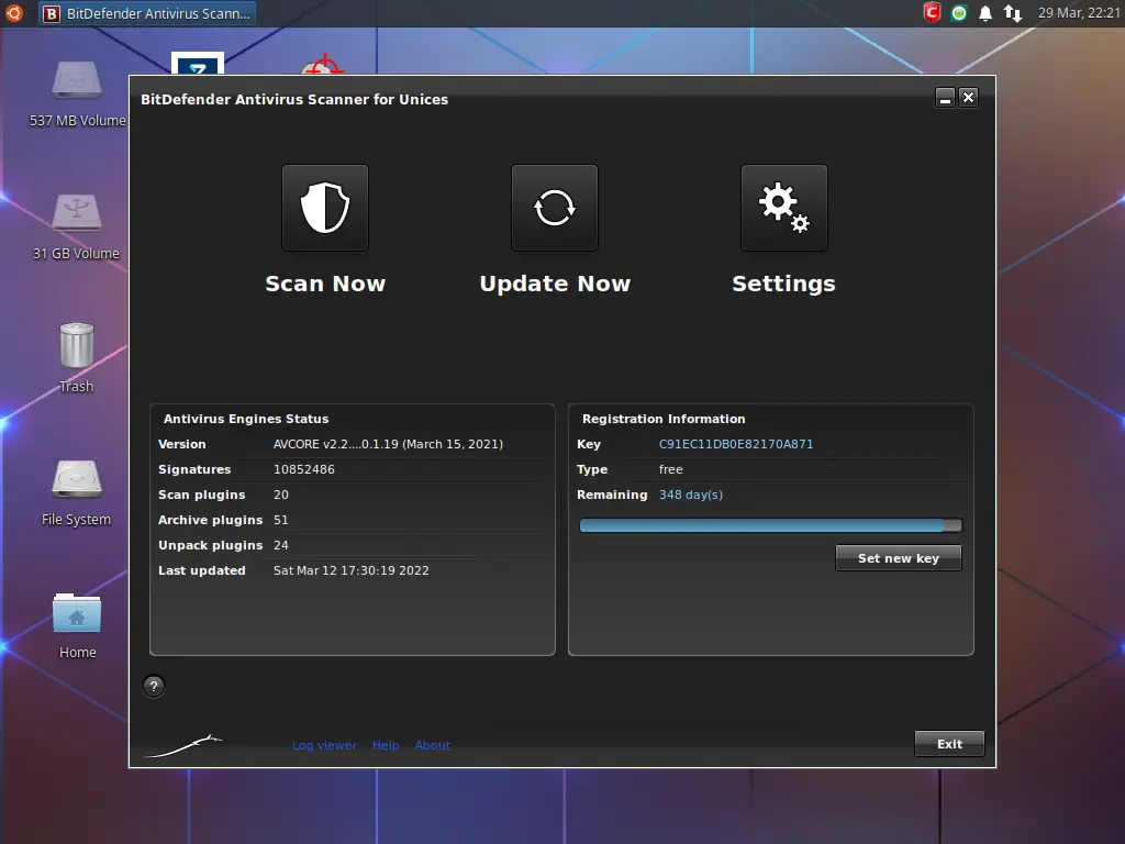 - Поддержка обновления антивирусных баз при наличии интернет-соединения