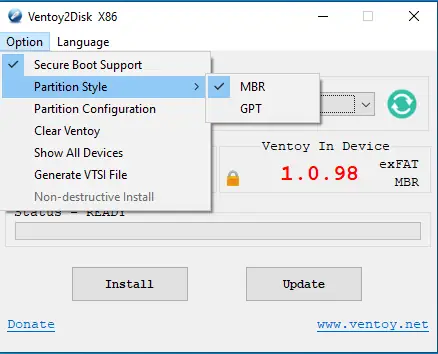 - Поддержка MBR и GPT, что позволяет использовать Ventoy на самых разных типах устройств