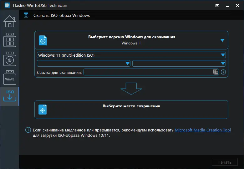 - Поддержка установки Windows 11, 10, 8, 7 и серверных версий на USB-устройства.