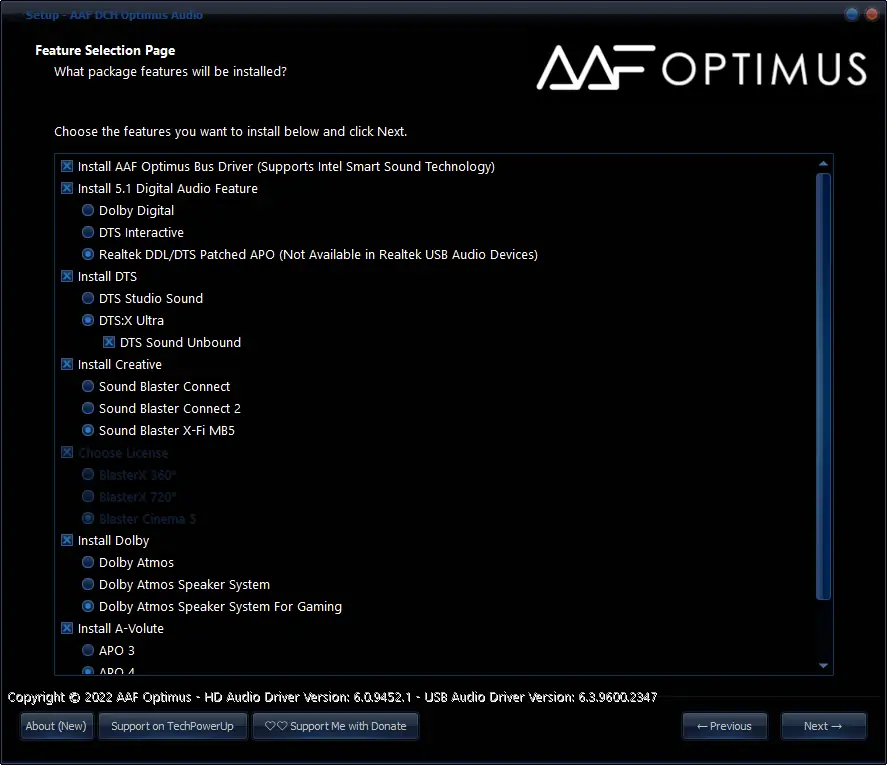 AAF DCH Optimus Audio — модифицированный драйвер для аудиочипов Realtek, объединяющий в себе передовые технологии обработки звука. Программа обеспечивает высокое качество воспроизведения аудио в музыке, фильмах и играх. Поддержка различных улучшителей звука делает её универсальным решением для пользователей, стремящихся к максимальной детализации и объёмности звучания.