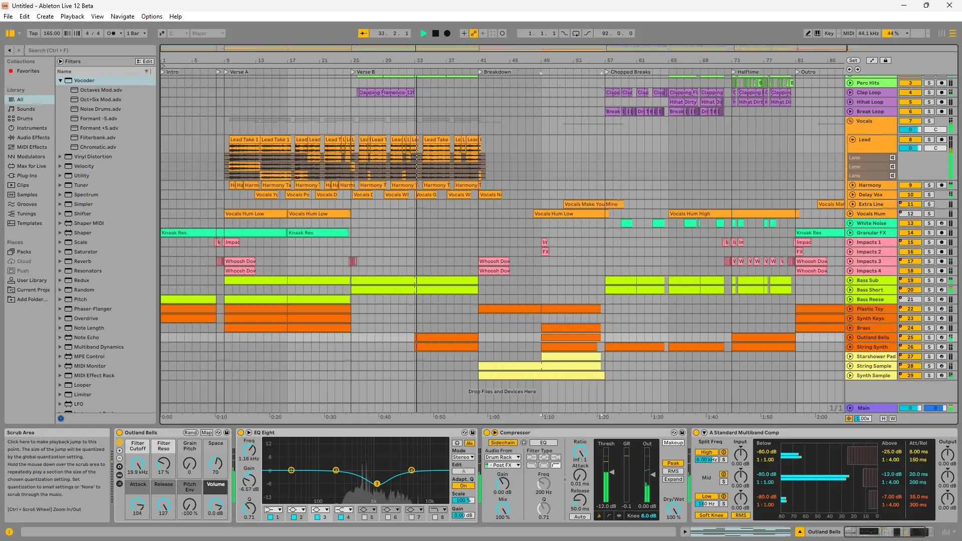- Live 12 предлагает улучшенные инструменты синтеза и обработки, включая новые эффекты и возможности визуализации.