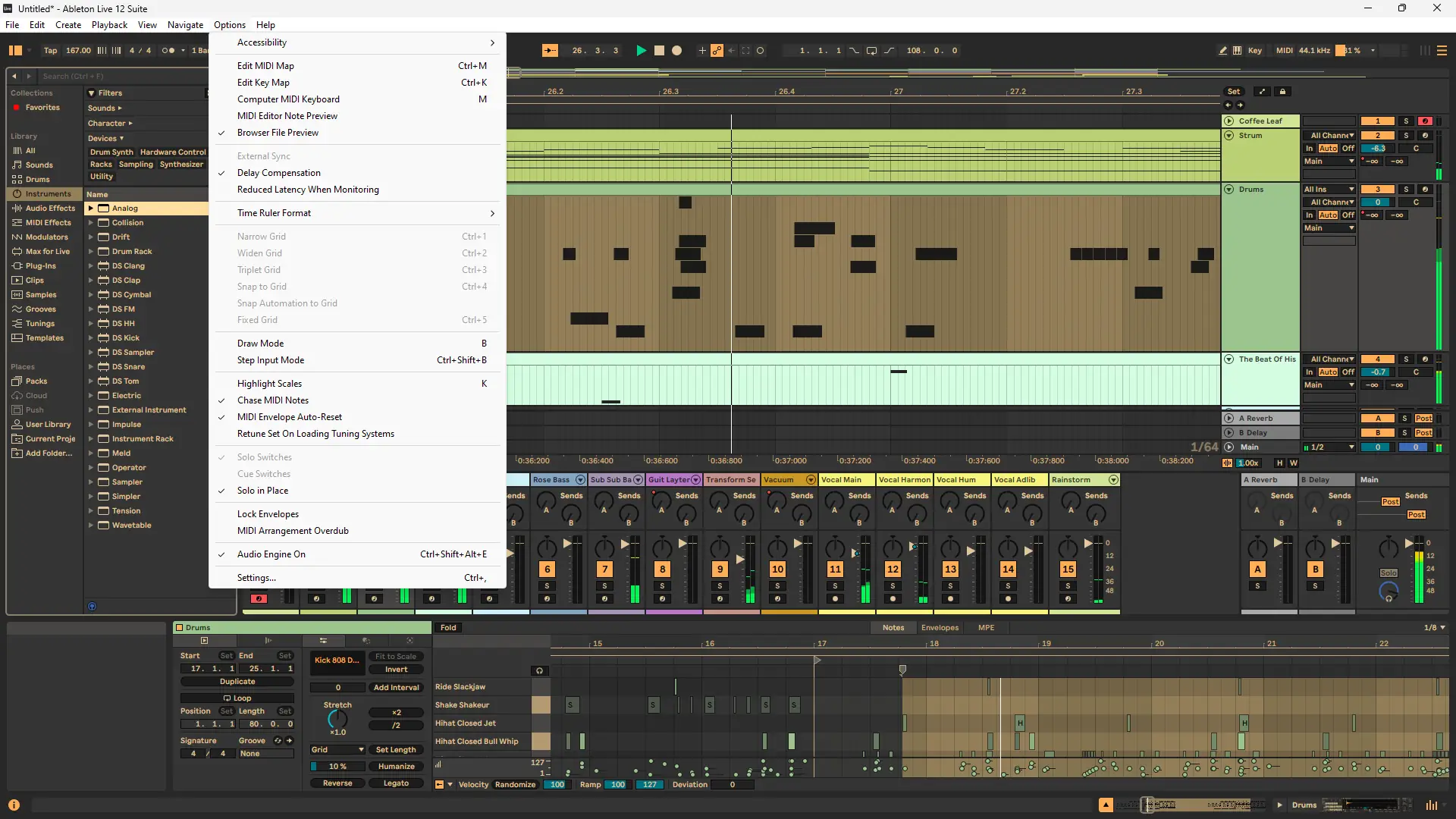 Творческий процесс в Ableton не прерывается даже при активной перестройке структуры проекта или добавлении новых эффектов.