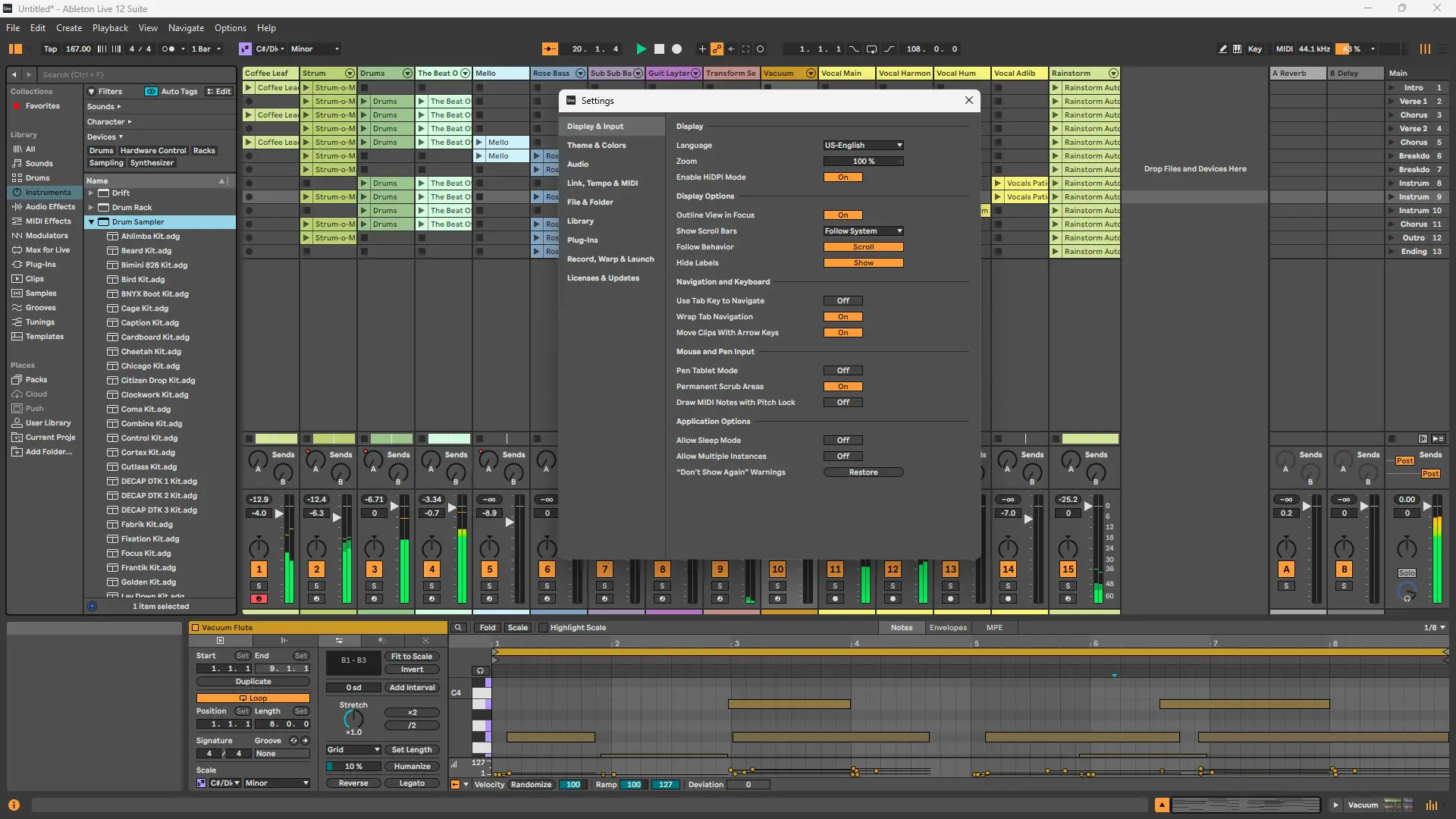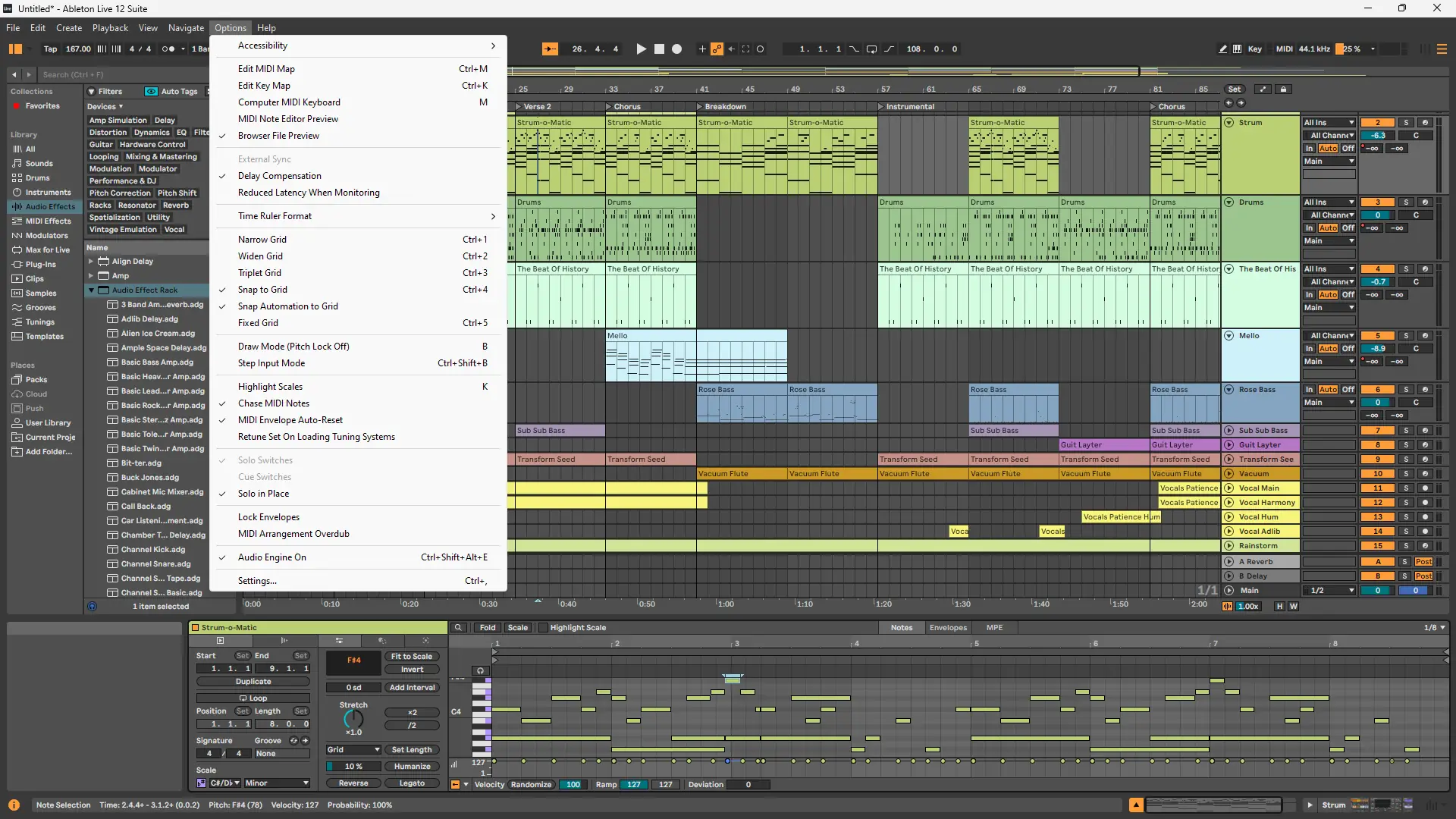 - Режим Session View идеально подходит для импровизации и живых выступлений.