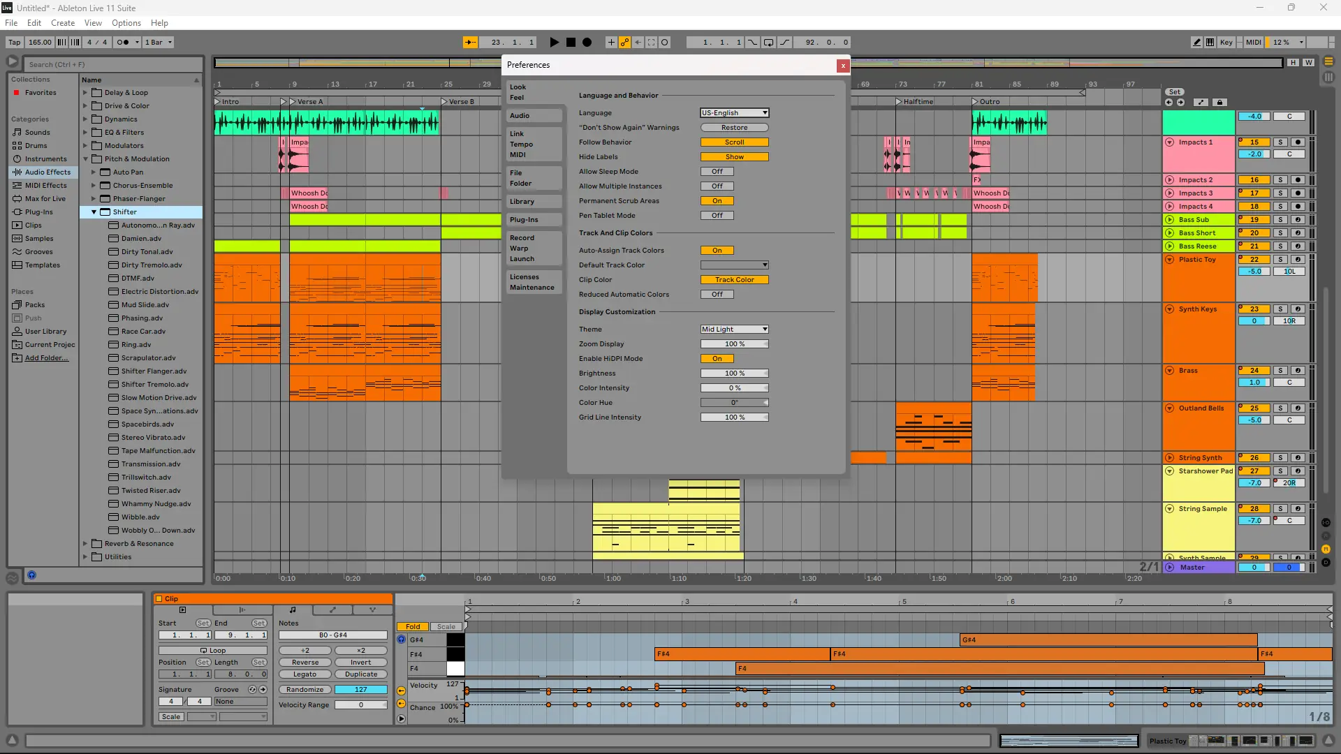 - Live 11 предлагает продвинутые инструменты, такие как Comping, Follow Actions и рандомизация макросов.