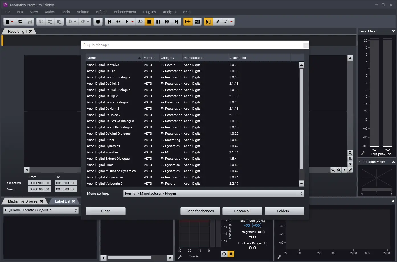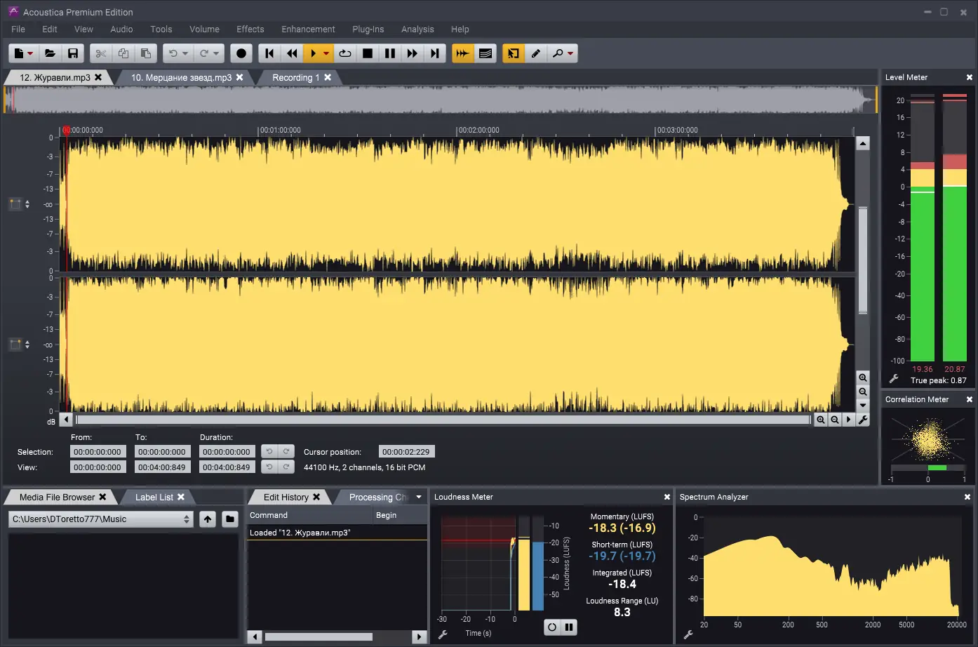 Acoustica демонстрирует высокую стабильность и оптимизацию, потребляя минимальные системные ресурсы даже при обработке многоканальных проектов. Встроенные инструменты для автоматического разделения треков, шумоподавления и синтеза высоких частот значительно ускоряют процесс редактирования. Программа поддерживает работу с пресетами, позволяет создавать кастомные кривые громкости и настраивать поведение эффектов в режиме реального времени.