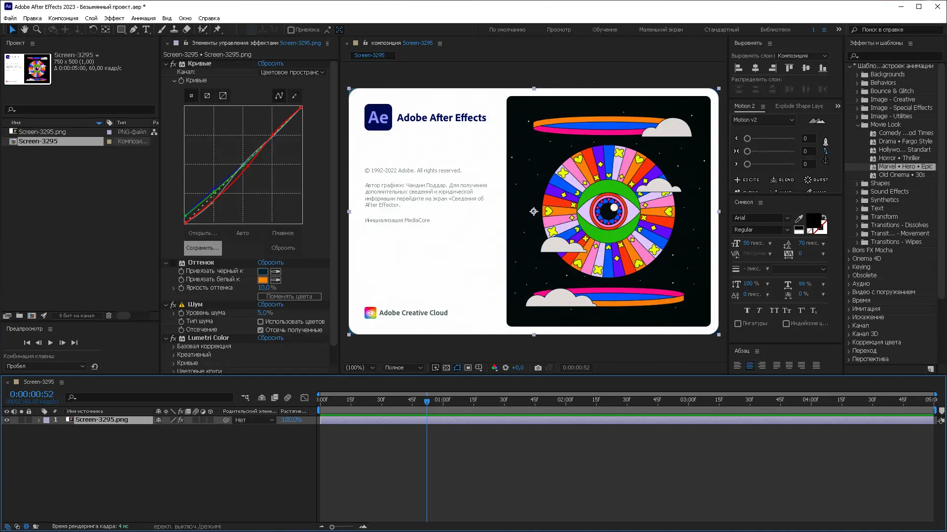 Adobe After Effects — это мощное приложение для создания динамичной графики, визуальных эффектов и анимации, применяемое как в индустрии большого кино, так и в производстве короткометражного онлайн-контента. Программа поддерживает работу с композициями, ключевыми кадрами, масками, эффектами и трекингом, обеспечивая высокую точность при настройке визуальных параметров. Она интегрируется с другими продуктами Adobe, такими как Premiere Pro, Photoshop и Audition, что делает её неотъемлемой частью рабочего процесса видеомонтажёров и дизайнеров.