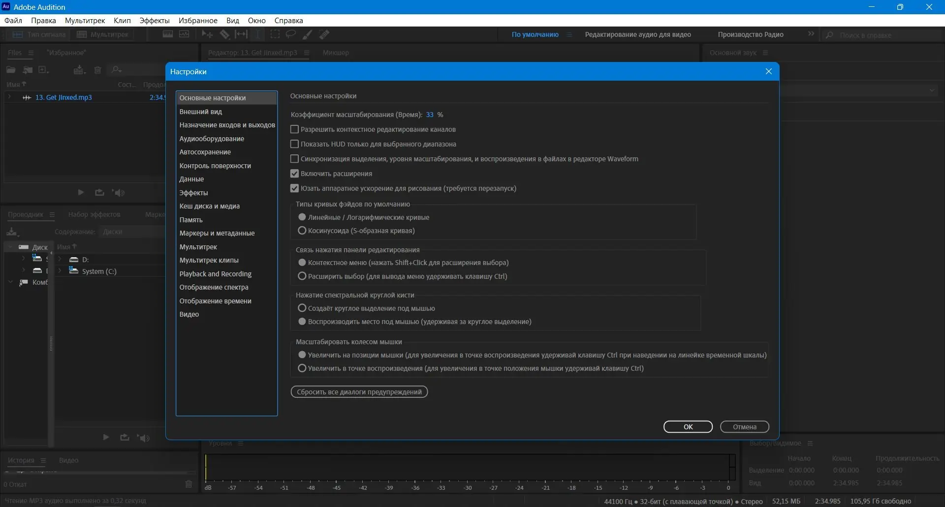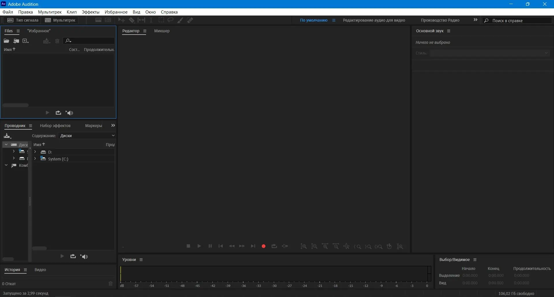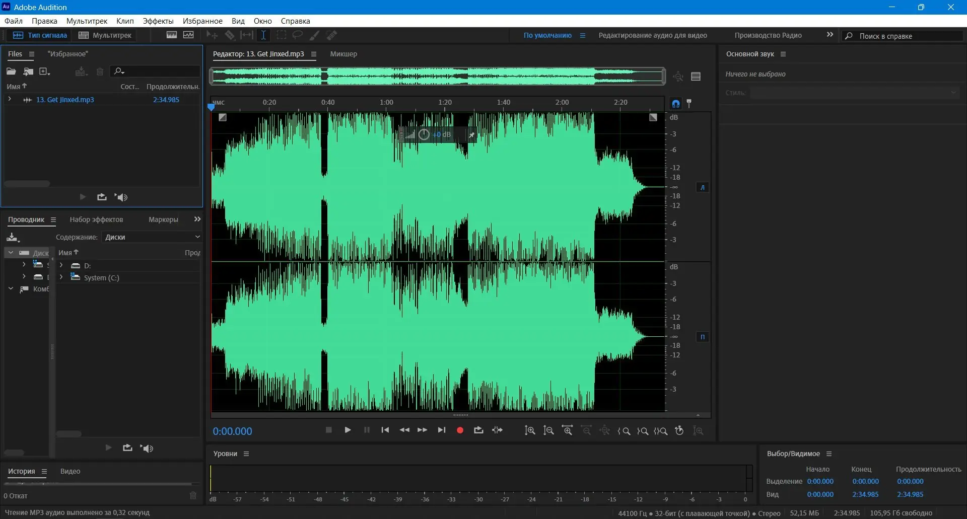 Работа в Adobe Audition начинается с выбора режима: многодорожечный или редактирование отдельного файла. В первом случае можно импортировать несколько аудиодорожек, накладывать эффекты и микшировать их, во втором — проводить детальное редактирование формы сигнала. Все изменения применяются в реальном времени, а встроенные анализаторы спектра и уровня громкости помогают контролировать качество звука. Программа также поддерживает работу с лупами и метками для точной навигации по проекту.