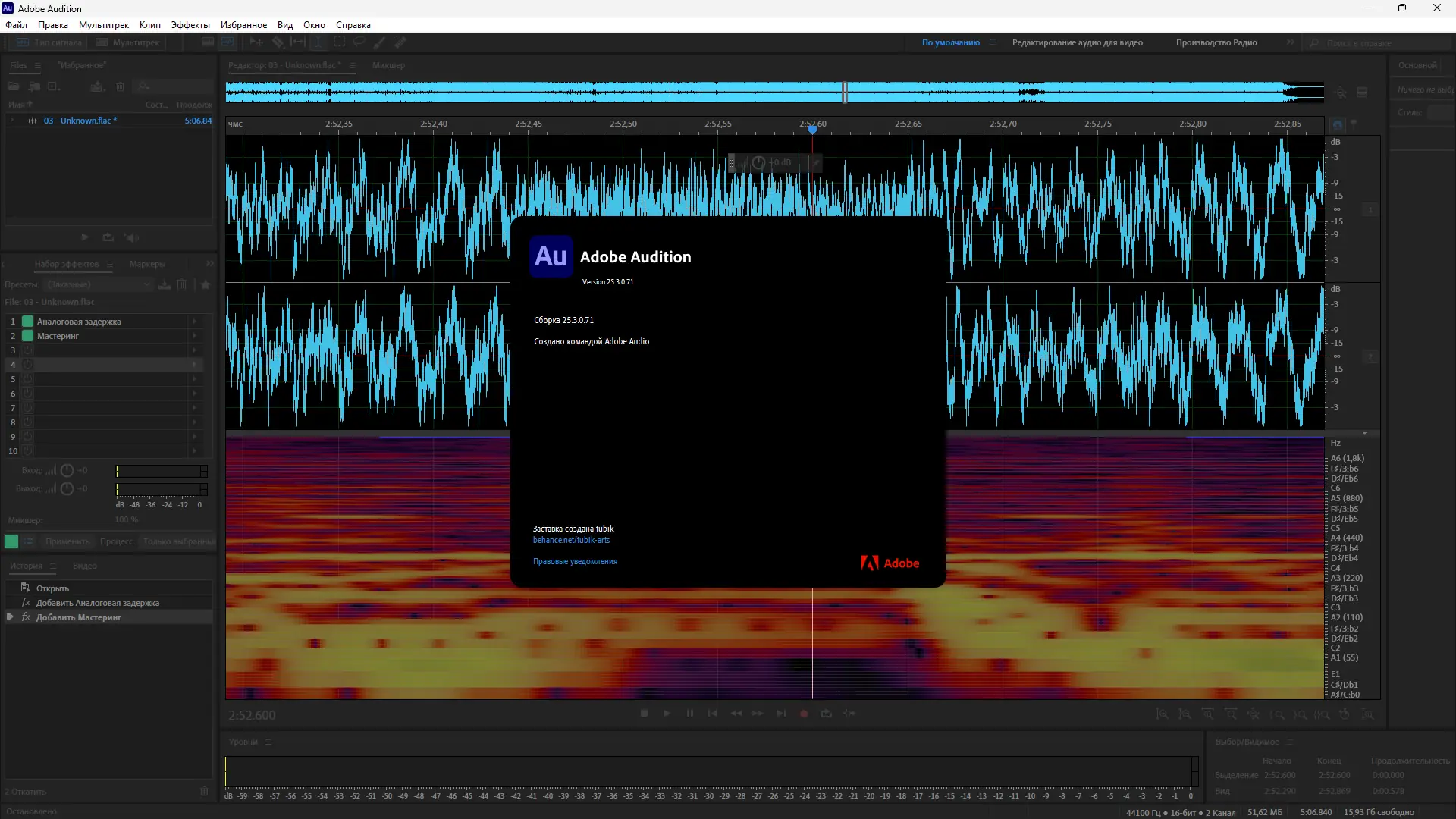 Adobe Audition — профессиональный аудиоредактор, предназначенный для записи, обработки и микширования звука с высокой точностью. Программа поддерживает работу с многодорожечными проектами, предлагает широкий набор эффектов и инструментов для восстановления аудио. Подходит как для музыкантов, так и для звукорежиссёров, работающих с видеопродукцией.