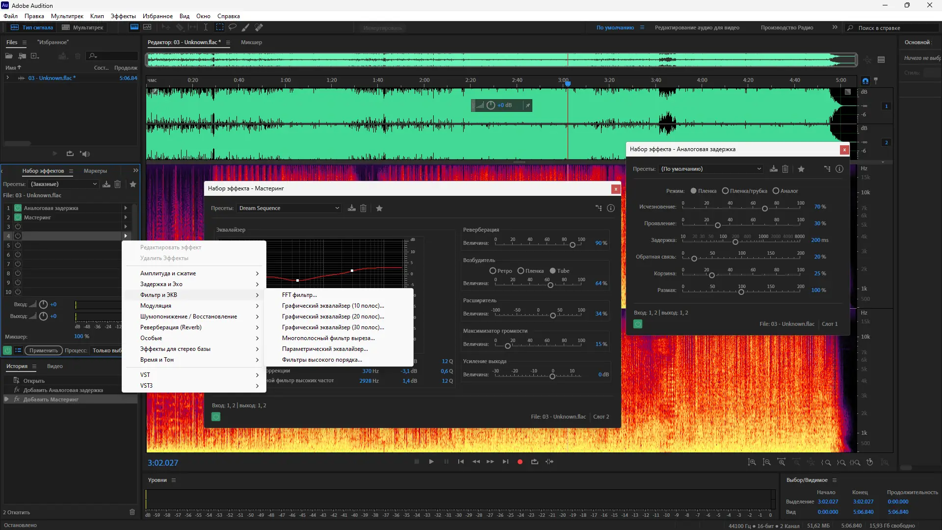- Встроенные инструменты анализа спектра, уровня громкости и шумоподавления