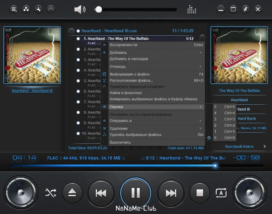 - Полная поддержка тегов, редактор метаданных и функция автоматической оценки треков