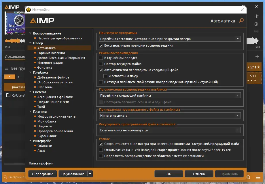 - Поддержка плагинов, расширяющих функционал проигрывателя.