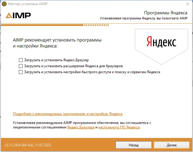 Программу можно легко установить на компьютер с Windows 7 и выше. Доступны как установочные версии, так и портативные сборки, не требующие инсталляции. Версия для Windows 10 полностью оптимизирована и поддерживает высокие разрешения экранов. Чтобы скачать бесплатно AIMP, достаточно выбрать подходящую разрядность системы. Установщик позволяет отказаться от дополнительных компонентов, сняв соответствующие галочки. Скачать для Windows можно как 32-битную, так и 64-битную версию. Тем, кто ищет способ скачать 10 версию программы, стоит учитывать, что AIMP универсален для всех редакций Windows, включая десятую. Официальная версия плеер доступна для скачивания без регистрации и смс.